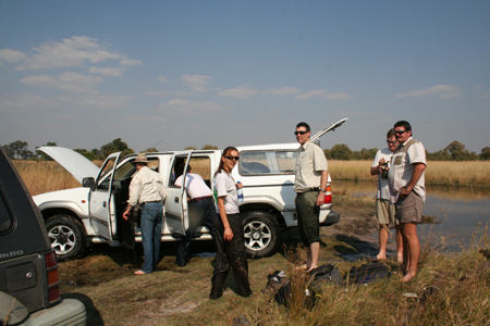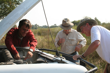So, now I currently sit at the edge of Mamili National Park writing up my story…one reason why so long…have nothing else to do but twiddle my thumbs…i assume sometime tonight we will get help (Gordon went off in the little Tracker back to the lodge (hour away) for a bigger truck and some help. The guys (b/c I’m clueless and probably just in the way) have been tinkering with the engine since the engine died but to no avail. Think it’s connected to the silly short-circuited alarm system but can’t seem to fix the problem…ah well, just another day in Africa…